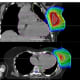 Figure 1 depicts coronal and axial images of her treatment plan. The radiation dose distribution shows complete avoidance of the heart and pericardium with protons (LEFT) versus photons (RIGHT). Notably, even with photons, radiation exposure to the heart is quite low. The improvement in radiation exposure to the heart with protons versus photons will vary significantly with the location of the target area in the breast and the patient’s unique anatomy.